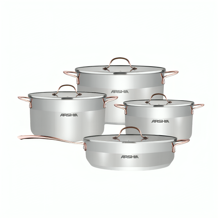 سرویس قابلمه 8 پارچه استیل دسته مسی عرشیا مدل SS064-3000
