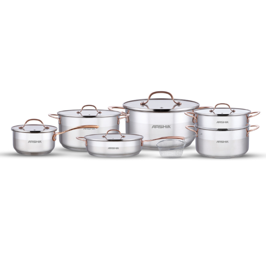 سرویس قابلمه دو درب استیل ۱۲ پارچه عرشیا مدل کوپر SS064-2963