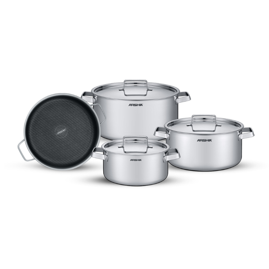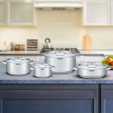 عرشیا با ارائه سرویس در جنسهای مختلف، حق انتخاب کاملی را به شما میدهد. هنگام خرید سرویس قابلمه، جنس را بر اساس سبک آشپزی خود انتخاب کنید:
