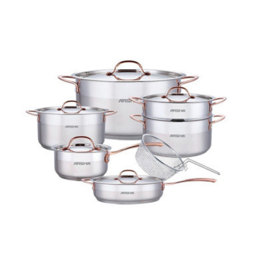 سرویس قابلمه 12 پارچه استیل دسته مسی عرشیا مدل SS064-2699