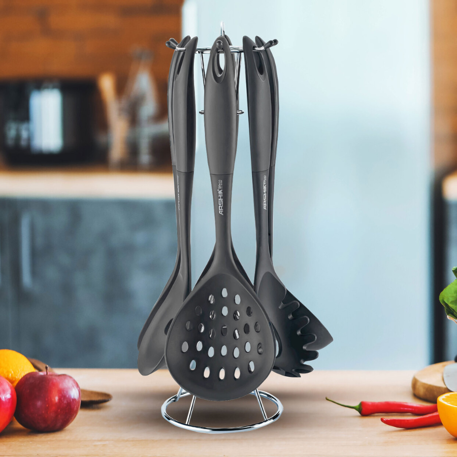 ست کفگیر و ملاقه سیلیکونی مشکی ۷ پارچه عرشیا مدل UL135-3005