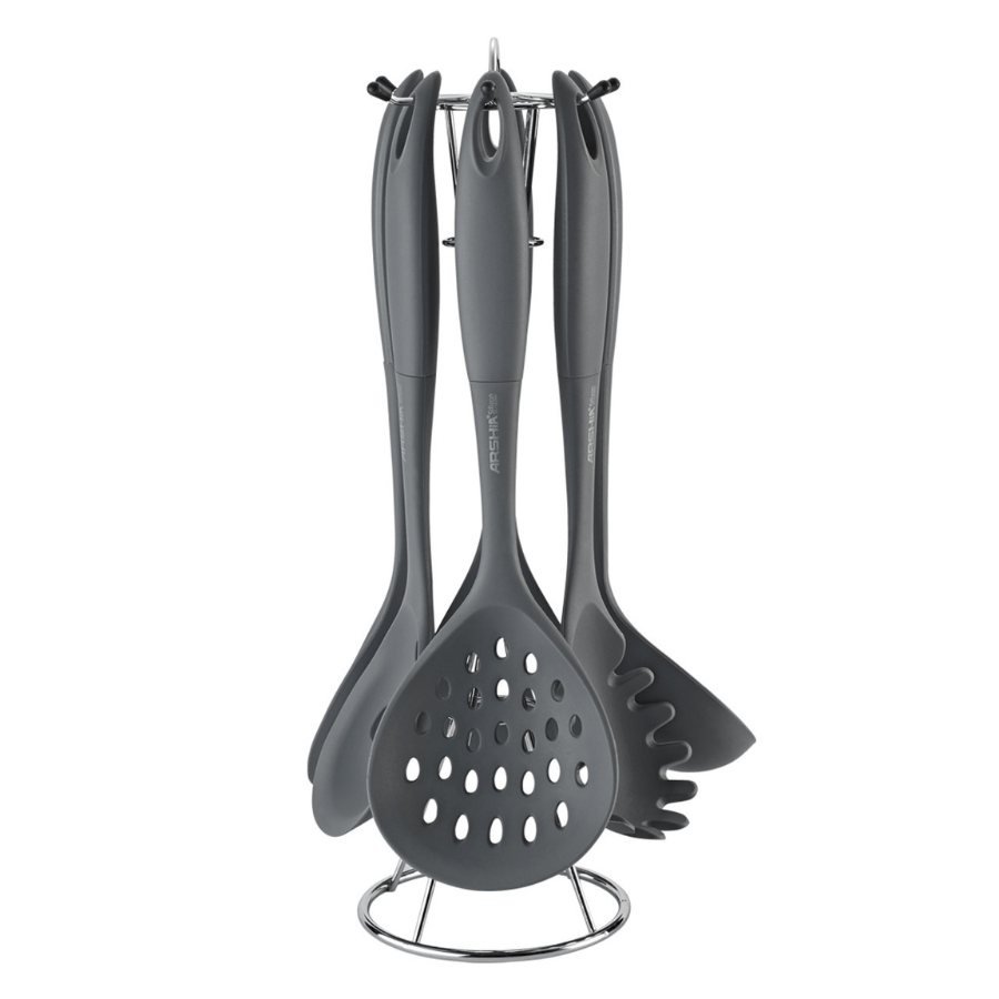 معمولاً شامل: ملاقه، کفگیر برنج، کفگیر شیاردار، قاشق پختوپز، چنگال اسپاگتی، قاشق شیاردار و یک عدد پایه نگهدارنده.