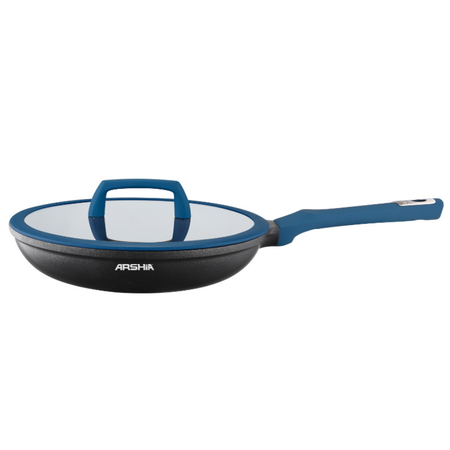 ماهیتابه چدن تکدسته آبی 22 سانتیمتری عرشیا مدل CO135-3108 با درب