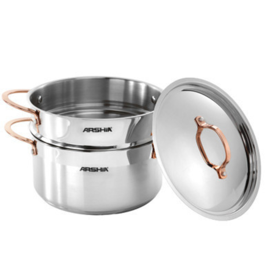خرید سرویس قابلمه عرشیا در مدل استیل، یک خرید برای تمام عمر است. برخلاف ظروف نچسب که پس از مدتی روکش آنها آسیب میبیند، ظروف استیل هرگز خراب نمیشوند. اضافه شدن بخش بخارپز و سبد استیل در این مدل، شما را از خرید جداگانه این ابزارها بینیاز میکند و هارمونی زیبایی به لوازم غیر برقی آشپزخانه شما میبخشد.
