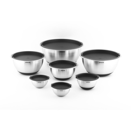 درپوشهای درزگیر هر کاسه، از نفوذ هوا و بو جلوگیری کرده و باعث حفظ تازگی مواد غذایی میشوند. پایههای سیلیکونی ضد لغزش نیز در هنگام کار، پایداری فوقالعادهای ایجاد میکنند. سطح داخلی براق و بیرون مات این مجموعه، جلوهای مدرن و لوکس به آشپزخانه شما میبخشد.