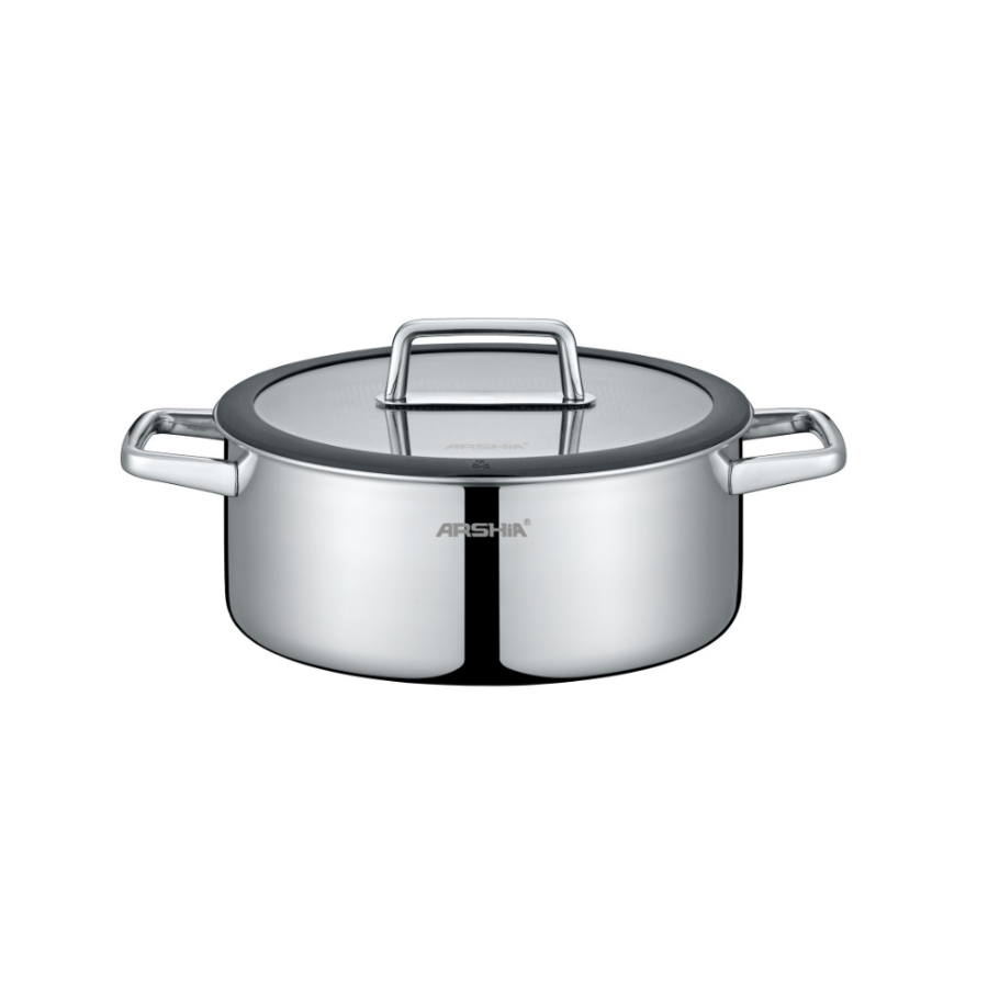 ماهیتابه استیل لیزری دو دسته عرشیا به‌همراه درب شیشه‌ای ۳۰ سانتی‌متر مدل SS050-3342