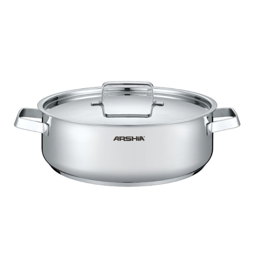 ماهیتابه دو دسته 28 سانتیمتری استیل عرشیا مدل SS768-3670 یک انتخاب حرفهای و کاربردی برای آشپزی روزمره و مهمانیهاست. این ماهیتابه از استیل ضدزنگ درجهیک ساخته شده که مقاومت بالایی در برابر حرارت، خطوخش و تغییر رنگ دارد.