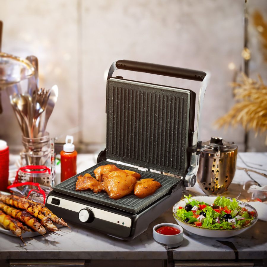 گریل برقی عرشیا مدل GM050-3258 یک انتخاب ایدهآل برای تهیه سریع و خوشطعم انواع غذاها در خانه است. این دستگاه با طراحی کاربردی و امکان باز شدن ۱۸۰ درجه، فضای پخت شما را دو برابر کرده و آن را به یک گریل رومیزی بزرگ تبدیل میکند. از آمادهسازی صبحانه و ساندویچ گرفته تا گریل انواع گوشت، مرغ و سبزیجات، این گریلمیکر عملکردی قدرتمند، یکنواخت و آسان را در اختیار شما قرار میدهد. پوشش نچسب با طرح سنگ، نظافت دستگاه را ساده کرده و طراحی کمجا امکان نگهداری عمودی را فراهم میکند.